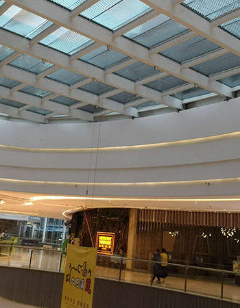 商場用電動提升機(jī):現(xiàn)在每個商場基本都會使用商場廣告吊鉤,而這些廣告吊鉤大多是安裝在商場中庭邊緣的,通過導(dǎo)向輪把鋼絲繩引導(dǎo)過去然后垂下吊鉤,這樣在需要更換條幅的時候就只要輕輕一按,就可以放下吊鉤更換條幅了。